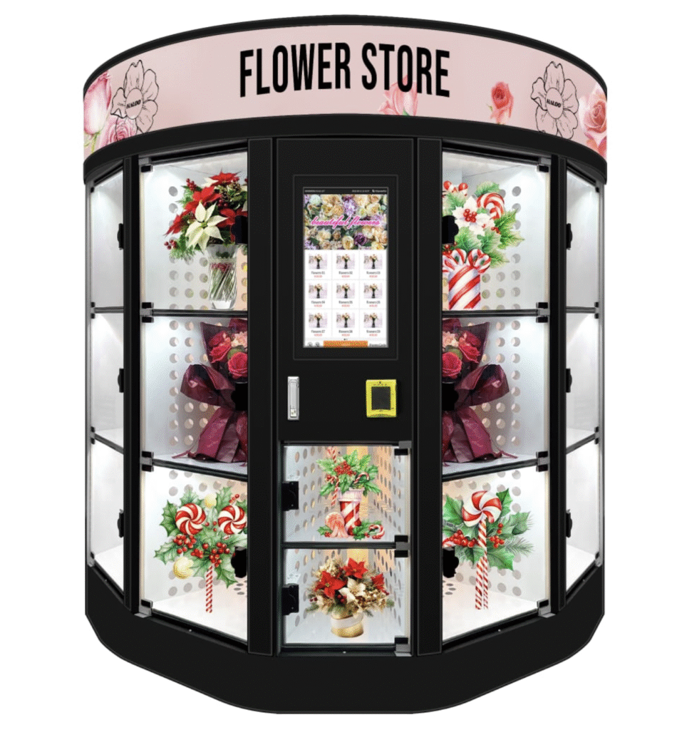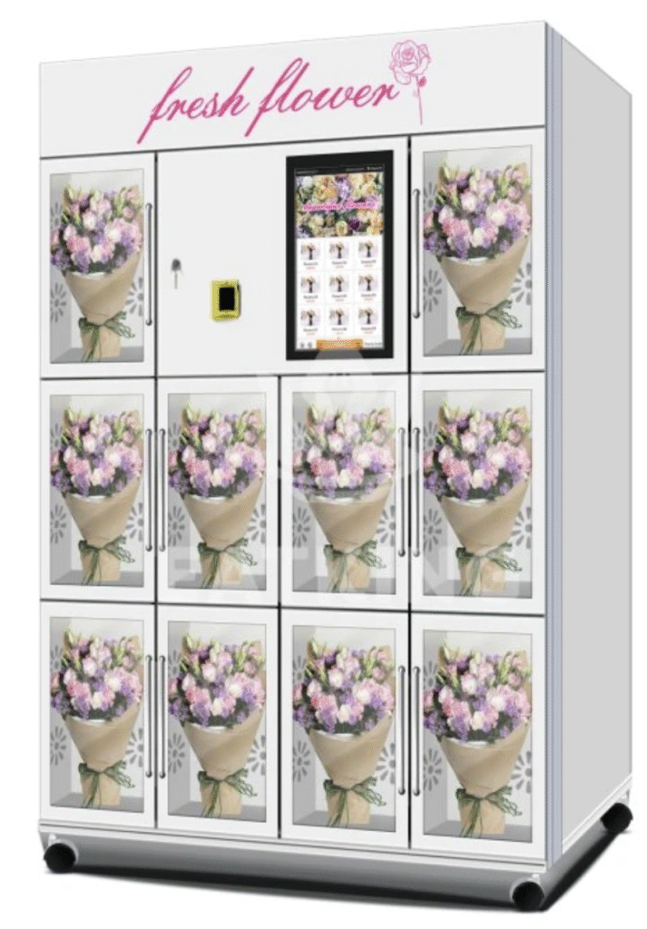Elegantní květinový automat s kapacitou až 30 kytic – stylový prodej nonstop